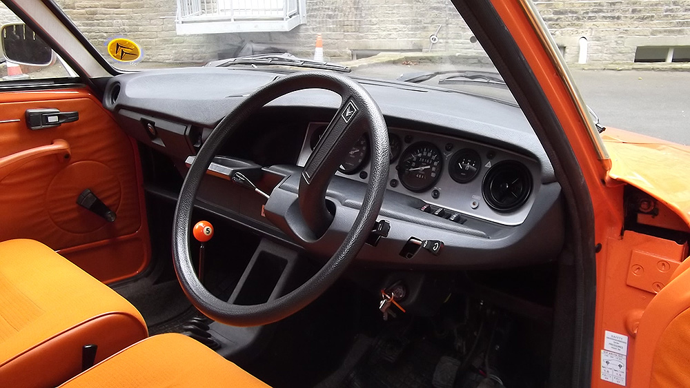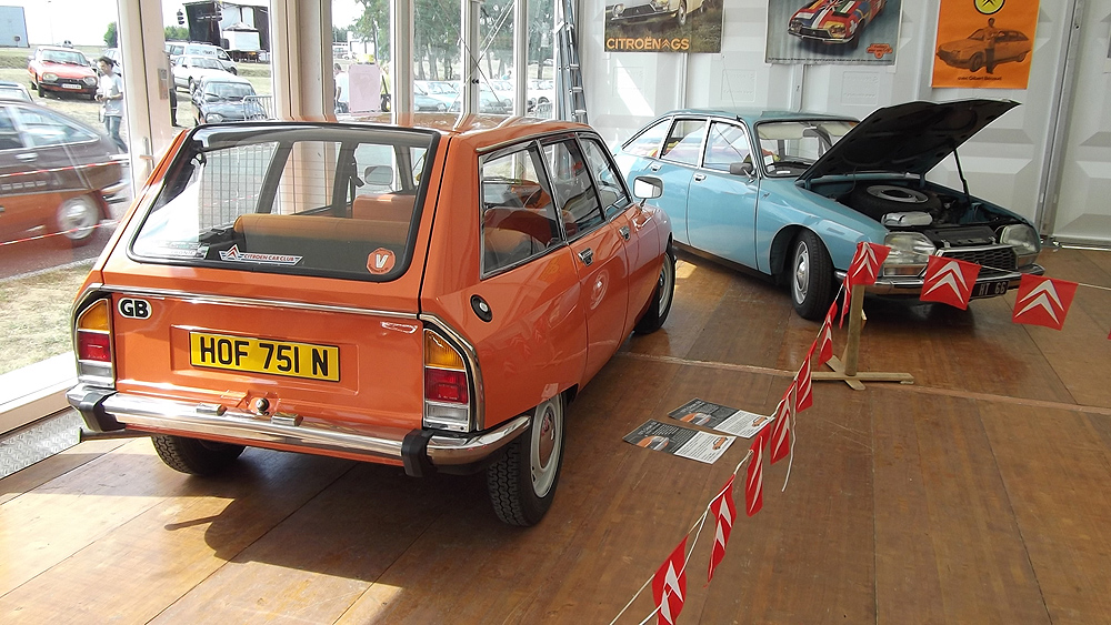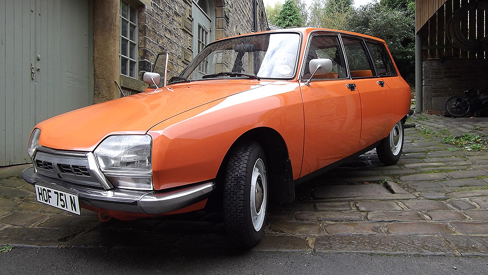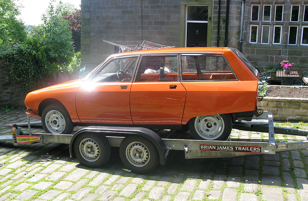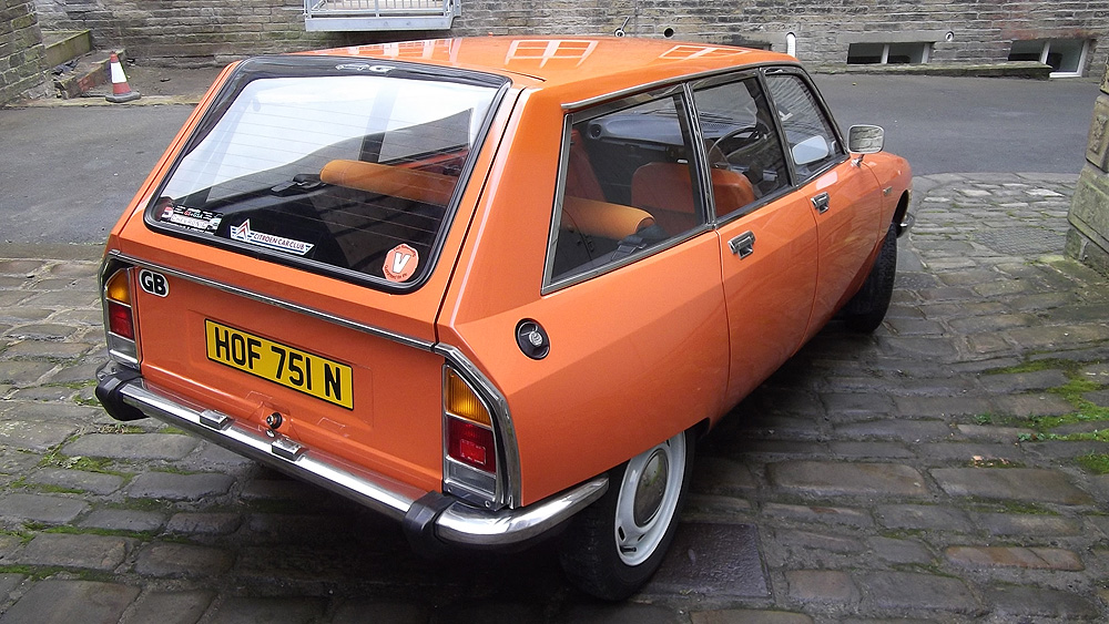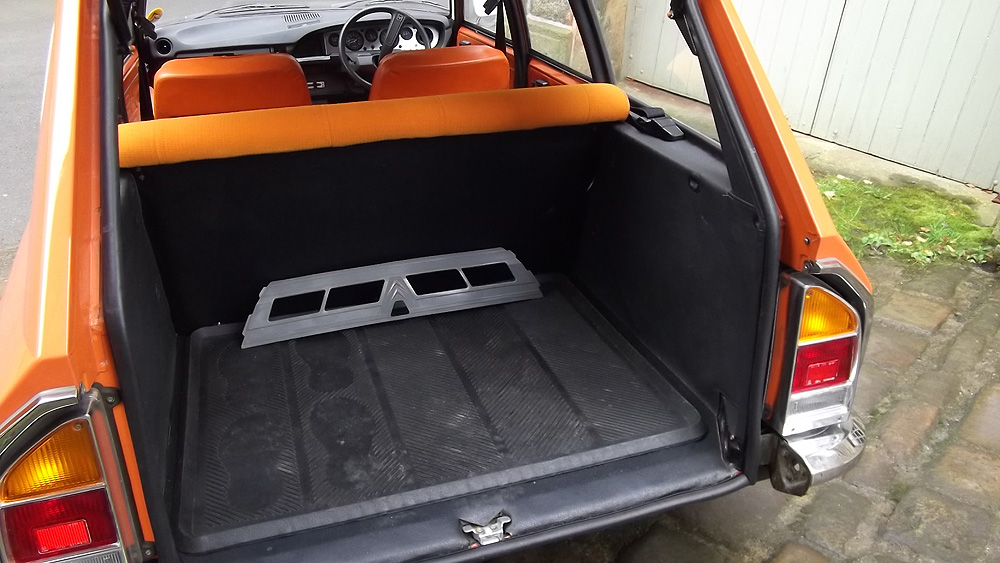 For those who don't know these mid-range Citroëns, they offer an astonishing level of refinement compared to almost anything else available in the 1970's - and there are few cars of this size on the market now which are as comfortable. When in tune they pull very smoothly throughout the rev range, and drive beautifully with very direct steering. The legendary brakes and handling are better than many modern cars (ABS notwithstanding). 2010 marked the 40th Anniversary of the GS's launch, resulting in much UK classic press coverage (including several articles featuring this very car with its unique colour specification). There are only a handful of GS Estates left on the road in Britain now, with the total number of UK GS and GSA combined being well under 100. This vehicle was rescued by a friend in the Citroën Car Club in mid-2007 from solicitors who were winding up the affairs of its original owner from new. It had reputedly spent the previous 10 years standing in a dark garage under his house, and its remarkable survival is largely down to a very thorough wax treatment when new, and very light use for most of its life. It is stunning in Orange Ténéré (AC329) with a matching interior - which must have been unusual for a UK-spec car (even in the mid-1970's). The orange vinyl is in excellent condition, and the cloth seat facings show none of the usual signs of fading or UV degradation, although it is apparent that some of the fabric's foam under-lining has lost a little strength. We bought the car in December 2007 with 29,000 miles recorded. Although MOT'd it was suffering fuel supply problems, and in January 2008 we sent it to The Chevronic Centre for a thorough service which included new timing belts / tensioners and hydraulic fluid change, as well as some new (fixed) seatbelts for the back. In June/July a new exhaust was fitted, the brakes were overhauled and I fitted a new fuel sender unit. It was used regularly through the summer months (including trips to Holland and Belgium) until July 2009, when a minor altercation with a local lamp post forced a temporary lay-up. Because 2010 was to bring various celebrations of the GS models 40th anniversary, rather than simply repair the wing and bumper damage, the decision was taken to treat the car to a high quality re-paint - primarily to eliminate various minor dents visible down both sides. All exterior and interior trim was carefully removed and the front panelwork dismantled - to reveal some rust in the cross-member behind the front bumper. A new GSA valance / X-member was sourced and adapted to fit (with 2 towing eyes). This, the headlamp panel and a new Citroën towbar were powder-coated in satin brown. Two replacement front bumper sections were acquired and both bumpers complete were sent for polishing. A common GS rust trap in the boot sides was eliminated by completely replacing the double skinned areas with single-skin repair panels from The Chevronic Centre. In early summer 2010 the dismantled car was superbly repainted by our local paint shop, Smith Motors. Over the following few weeks I re-fitted the front panels, and meticulously cleaned and reassembled all the trim. Hidden areas were wax treated, and vulnerable painted flanges were covered in fabric tape before refitting the many threaded clips used on these cars. Much time was spent carefully aligning the front end, and the tailgate which also recieved a new thicker perimeter seal. A new set of Michelin XZX 145-15's now replaced the original tyres, 2 of which were Michelin X's - which apparently went out of production in the early '90's! Following duties at our friends' wedding in mid July, the car took myself and a friend to the 40th Anniversary Celebrations at Thenay in France, where it was displayed in the Event Museum and honoured with a prize for its superb condition. Sadly, it suffered fuel problems on the way home, and has now been under the care of Graham Morton at GM Vehicle services, who removed the fuel tank and relieved it of 35 years of accumulated sludge, as well as cleaning out fuel lines and fitting a huge new fuel filter. The car is in excellent rust-free condition, and was sold in December 2011to a very good home, which those in Citroën circles will know very well). | ||||||||