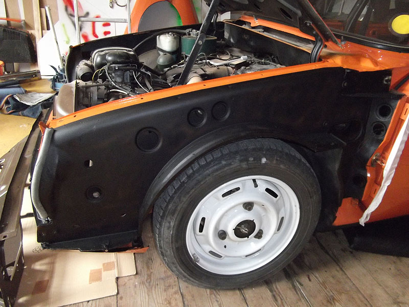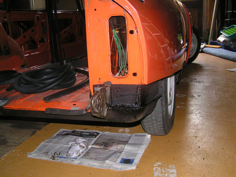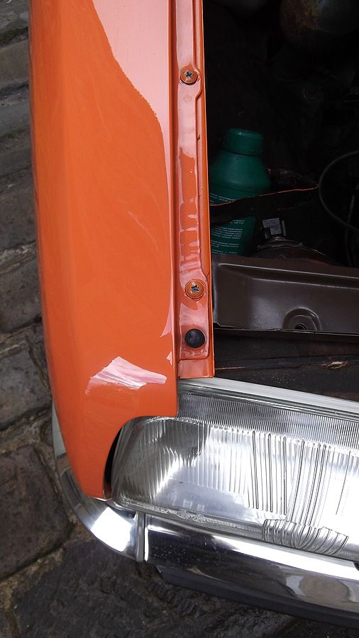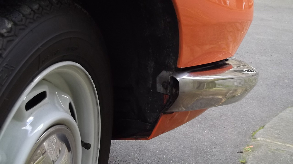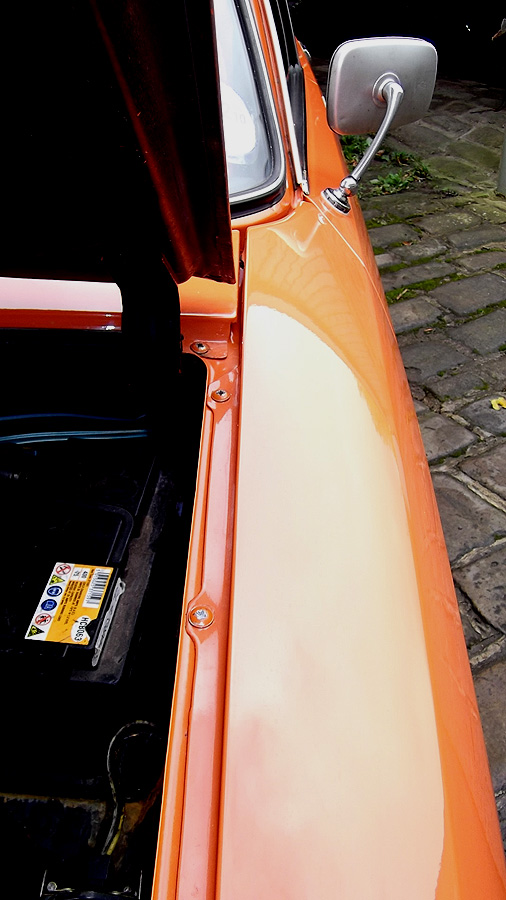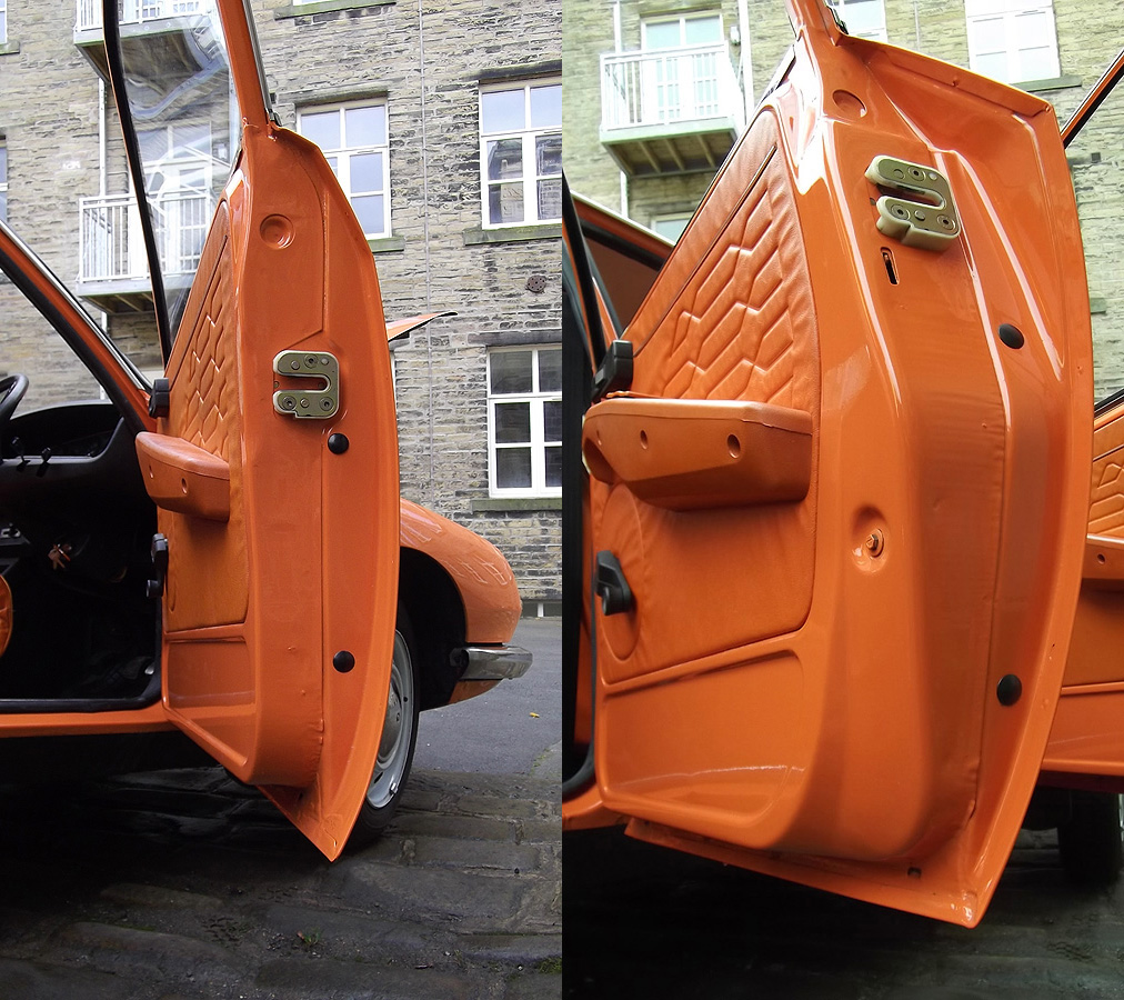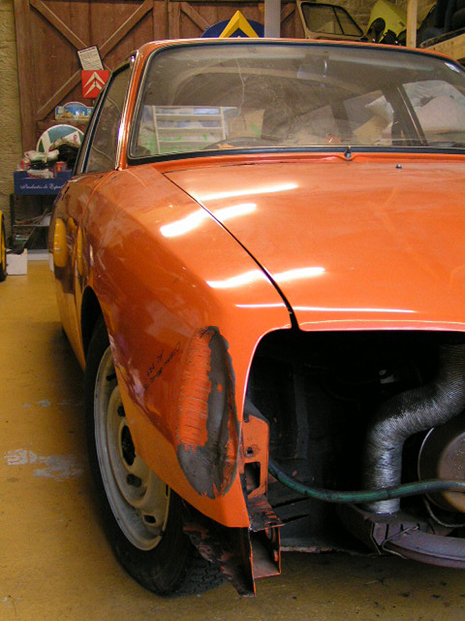 For those who don't know these mid-range Citroëns, they offer an astonishing level of refinement compared to almost anything else available in the 1970's - and there are few cars of this size on the market now which are as comfortable. When in tune they pull very smoothly throughout the rev range, and drive beautifully with very direct steering. The legendary brakes and handling are better than many modern cars (ABS notwithstanding). 2010 marked the 40th Anniversary of the GS's launch, resulting in much UK classic press coverage (including several articles featuring this very car with its unique colour specification). There are only a handful of GS Estates left on the road in Britain now, with the total number of UK GS and GSA combined being well under 100. This vehicle was rescued by a friend in the Citroën Car Club in mid-2007 from solicitors who were winding up the affairs of its original owner from new. It had reputedly spent the previous 10 years standing in a dark garage under his house, and its remarkable survival is largely down to a very thorough wax treatment when new, and very light use for most of its life. It is stunning in Orange Ténéré (AC329) with a matching interior - which must have been unusual for a UK-spec car (even in the mid-1970's). The orange vinyl is in excellent condition, and the cloth seat facings show none of the usual signs of fading or UV degradation, although it is apparent that some of the fabric's foam under-lining has lost a little strength. We bought the car in December 2007 with 29,000 miles recorded. Although MOT'd it was suffering fuel supply problems, and in January 2008 we sent it to The Chevronic Centre for a thorough service which included new timing belts / tensioners and hydraulic fluid change, as well as some new (fixed) seatbelts for the back. In June/July a new exhaust was fitted, the brakes were overhauled and I fitted a new fuel sender unit. It was used regularly through the summer months (including trips to Holland and Belgium) until July 2009, when a minor altercation with a local lamp post forced a temporary lay-up. Because 2010 was to bring various celebrations of the GS models 40th anniversary, rather than simply repair the wing and bumper damage, the decision was taken to treat the car to a high quality re-paint - primarily to eliminate various minor dents visible down both sides. All exterior and interior trim was carefully removed and the front panelwork dismantled - to reveal some rust in the cross-member behind the front bumper. A new GSA valance / X-member was sourced and adapted to fit (with 2 towing eyes). This, the headlamp panel and a new Citroën towbar were powder-coated in satin brown. Two replacement front bumper sections were acquired and both bumpers complete were sent for polishing. A common GS rust trap in the boot sides was eliminated by completely replacing the double skinned areas with single-skin repair panels from The Chevronic Centre. In early summer 2010 the dismantled car was superbly repainted by our local paint shop, Smith Motors. Over the following few weeks I re-fitted the front panels, and meticulously cleaned and reassembled all the trim. Hidden areas were wax treated, and vulnerable painted flanges were covered in fabric tape before refitting the many threaded clips used on these cars. Much time was spent carefully aligning the front end, and the tailgate which also recieved a new thicker perimeter seal. A new set of Michelin XZX 145-15's now replaced the original tyres, 2 of which were Michelin X's - which apparently went out of production in the early '90's! Following duties at our friends' wedding in mid July, the car took myself and a friend to the 40th Anniversary Celebrations at Thenay in France, where it was displayed in the Event Museum and honoured with a prize for its superb condition. Sadly, it suffered fuel problems on the way home, and has now been under the care of Graham Morton at GM Vehicle services, who removed the fuel tank and relieved it of 35 years of accumulated sludge, as well as cleaning out fuel lines and fitting a huge new fuel filter. The car is in excellent rust-free condition, and was sold in December 2011to a very good home, which those in Citroën circles will know very well). | ||||||||