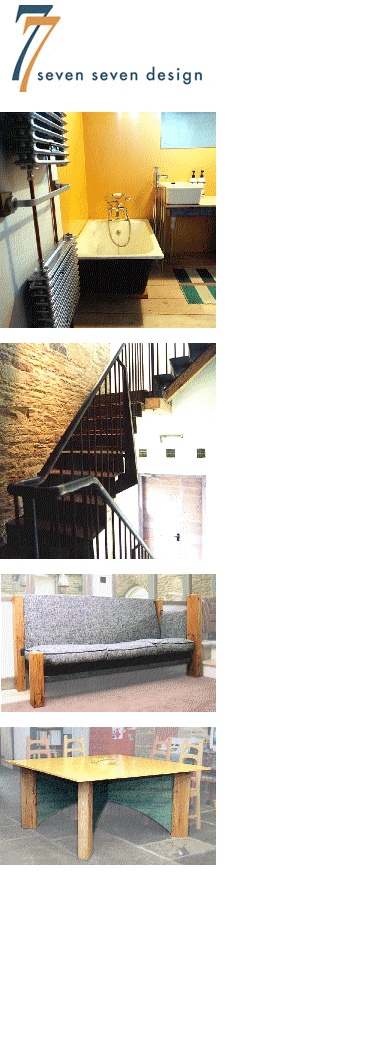 ![]() | Under the name 77 Design (pronounced seven seven) Dan Fletcher has operated a Graphic Design business (originally at Silsden) since 1989/90. Hilly Fletcher was also running her own company (BMW Graphics) in north London when the two met and joined forces in 1994. 77 Design continues to provide clients both locally and nationally with a variety of print design and promotional services, along with web site design. More recently (partly as result of experience gained in the conversion of Oats Royd Barn - but also due to other long held interests) we have sought commissions in three other areas of design: Product, Furniture and Interior. These design disciplines have a lot more in common with Graphics (for print and web) than one might imagine; proportion, balance, colour, texture - to name but a few. Also, there are often fresh ideas to be gained by crossing the commonly perceived boundaries between different areas of design. Hilly is now also having some success in the Fine art / Photography fields - see her Art Gallery. Please contact us if you would like to discuss (without any obligation) projects involving any of these areas - or, of course come and stay at Oats Royd Barn to experience our style of interior living. Click here for more information about 77 Design. | ||||||||||||||